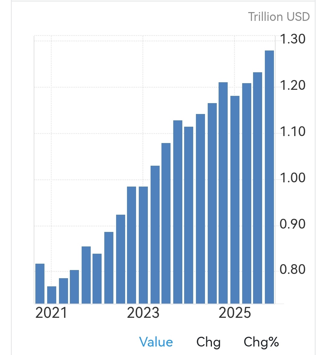 Si consideri che gli statunitensi vivono una condizione di incremento vertiginoso di debito al consumo, che ben si esprime nel grafico sulla crescita del saldo del debito delle Carte di Credito (immagine 1).