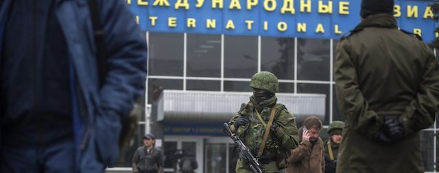 I timori di conflitto in Crimea si sono intensificati dopo che il ministro degli Interni ad interim dell’Ucraina, Arsen Avakov ha annunciato che uomini armati e in uniforme russa hanno preso il controllo dei due principali aeroporti della Crimea quello di Sebastopoli (militare) e quello di Simferopoliforze, accusando Mosca di "un'invasione armata e occupazione in violazione di tutti gli accordi e le norme internazionali ".