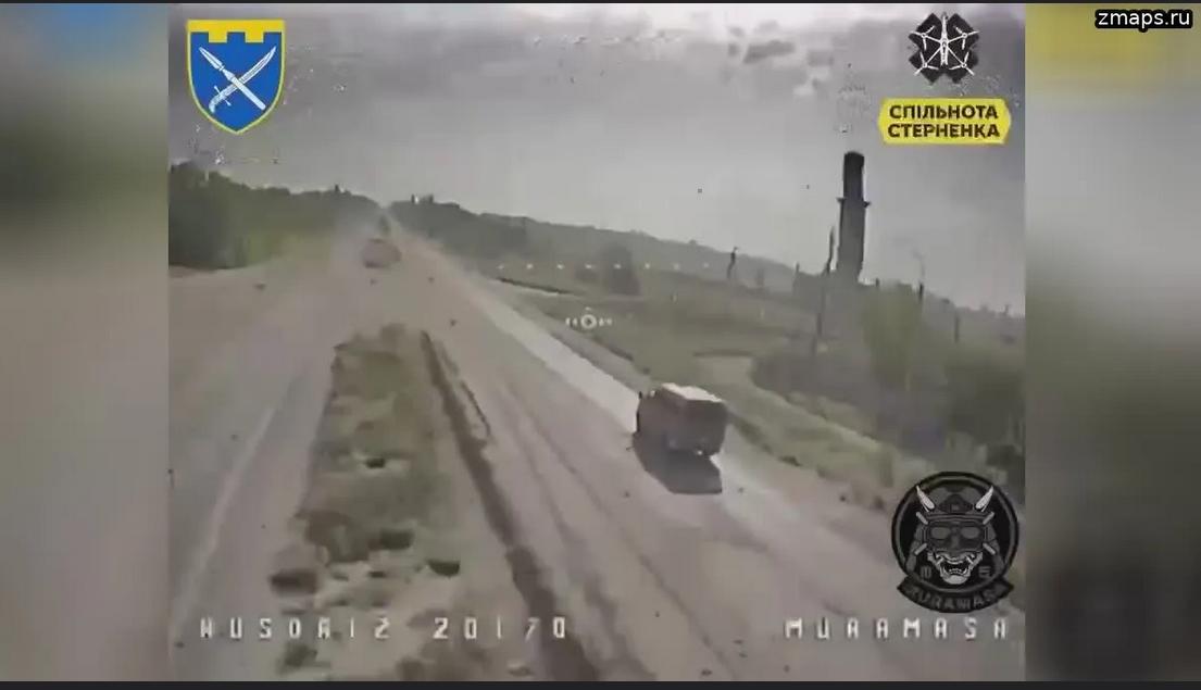 Il video mostra un primo impatto di un drone kamikaze su un minibus civile, che viene avvolto dalle fiamme, e poi, dopo l'arrivo dei vigili del fuoco, un secondo drone FPV colpisce il loro camion.