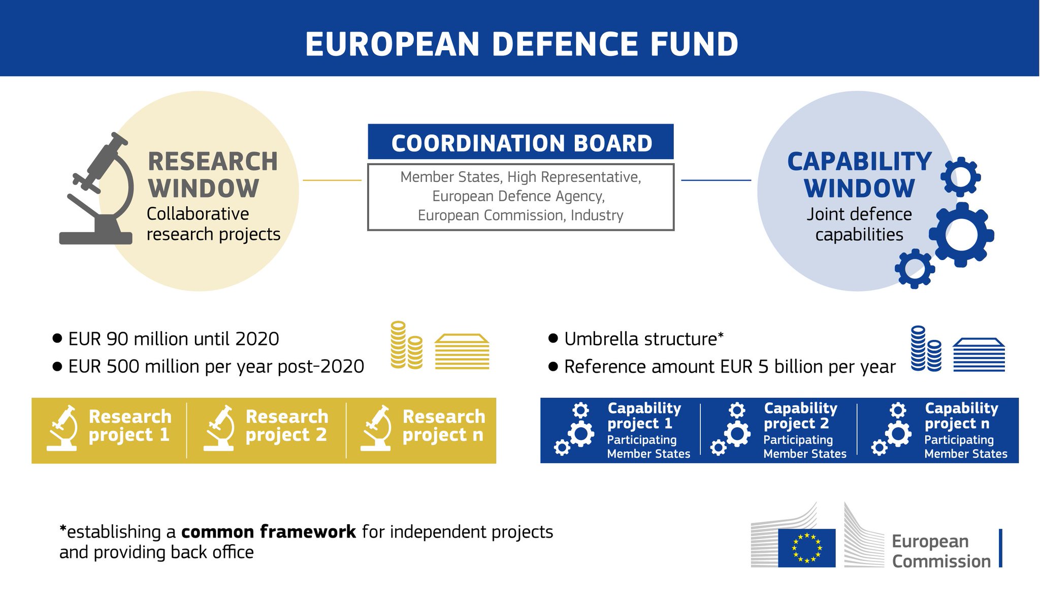 Il fondo si articola in due "finestre": una legata alla ricerca e una legata alle capacità, due "finestre" che sono complementari ma diverse nella loro struttura legale e budget di finanziamento.