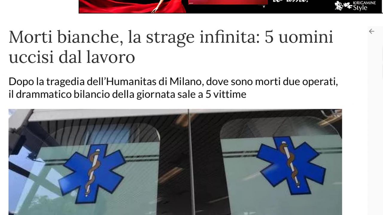 La strage continua e si estende, oggi cinque lavoratori sono stati uccisi. E ancora una volta i giornali titolano “morti bianche”. Ma vergognatevi , sono OMICIDI per profitto, causati dal mancato rispetto delle norme di sicurezza.