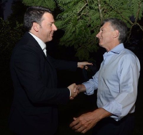 Oggi è proprio il premier italiano quello che chiede di scommettere nuovamente sull'Argentina. Un’Argentina indebitata ma integrata nel mondo che riceverà il presidente francese Francoise Hollande tra pochi giorni, e tra alcuni mesi lo stesso Barack Obama. Anche Renzi ha promesso un'alluvione di funzionari ed imprenditori italiani nei prossimi mesi, negoziazioni bilaterali nel settore alimentare, sulle ferrovie e le infrastrutture - una delle grandi scommesse del macrismo -, oltre che di lavorare più uniti nelle Nazioni Unite.