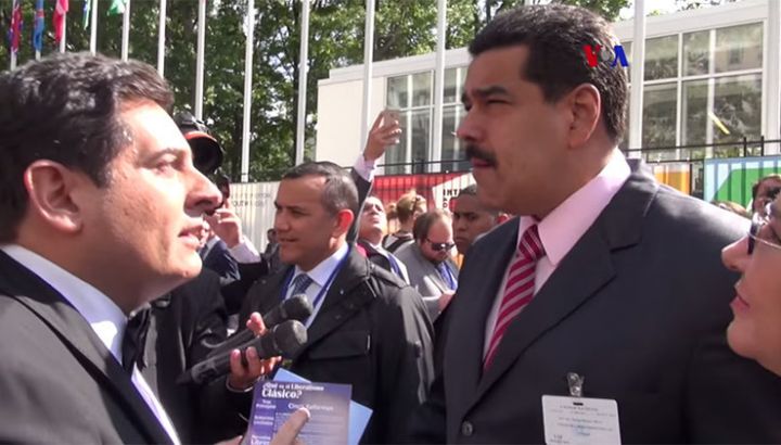 Il candidato autoproclamato alla presidenza del Perù Claudio Zolla ha avuto uno scambio vivave sulle differenze tra capitalismo e socialismo con il presidente venezuelano Nicolas Maduro, avvicinato fuori la sede delle Nazioni Unite a New York.