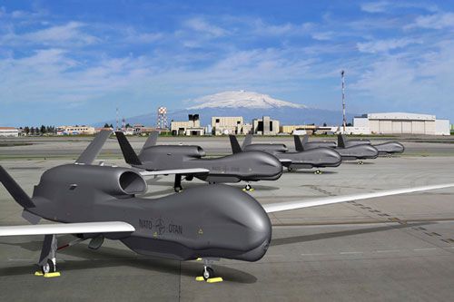 La Sicilia non sarà solo la capitale mondiale dei droni USA. Nei prossimi mesi entrerà in funzione nella grande stazione aeronavale di Sigonella anche il nuovo sistema di “sorveglianza terreste” dell’Alleanza Atlantica, l’AGS (Alliance Ground Surveillance), basato su cinque droni-spia RQ-4B Global Hawk prodotti dalla holding statunitense Northrop Grumman.