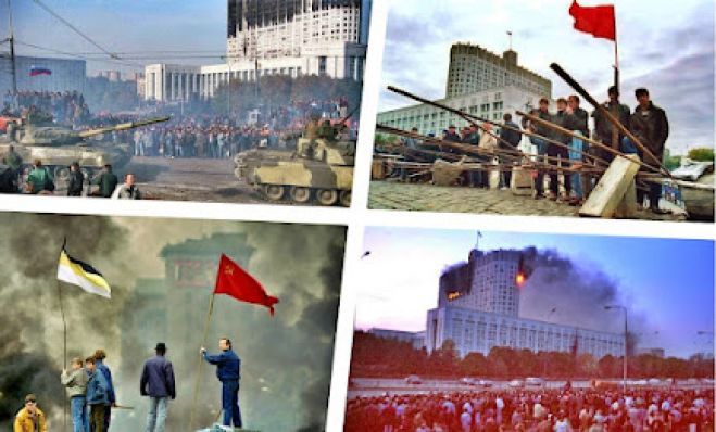Oggi è l'anniversario del bombardamento del parlamento russo, dove erano asserragliati i parlamentari comunisti (eletti in libere elezioni pluripartitiche e gestite dai liberaloidi) che si opponevano al saccheggio del paese e all'impoverimento delle persone che si stava realizzando a causa delle riforme dell'alcolizzato burattino degli occidentali Eltcin. Il parlamento fu sciolto a suon di bombe e la costituzione annullata.
