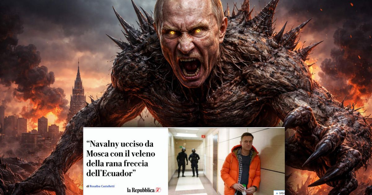 Questo il titolo di Repubblica (uguale quello de La Stampa, di RaiNews e di tanti altri media mainstream) che, evidentemente, non si domanda perché mai i russi, dopo avere avvelenato Navalny, incomprensibilmente, hanno consegnato la salma alla moglie che poi l’ha smistata a ben cinque servizi segreti che, a due anni dalla morte, hanno aspettato la Conferenza sulla sicurezza di Monaco per rendere pubbliche le loro analisi?