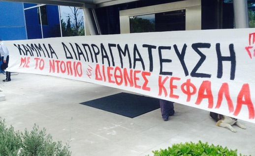 Lunedì, mentre il ministro delle Finanze tedesco apriva alla possibilità di un referendum in Grecia "per far decidere ai cittadini se sono pronti ad accettare quello che è necessario", si legga altre misure di austerità, almeno 30 persone hanno occupato l'edificio dell'azienda tedesca Siemens ad Atene per protestare contro le politiche economiche di Berlino e dell'Ue. "Non diventeremo una colonia tedesca o di qualsiasi altro imperialista", lo slogan stampato su alcuni volantini. "No alle trattative con capitalisti nazionali e internazionali", recitava invece lo striscione esposto dai manifestanti.