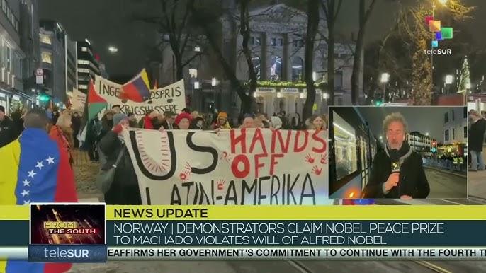 #Norway | An alliance of Norwegian organizations dedicated to international solidarity staged a protest rejecting the Nobel Committee’s decision to award the Nobel Peace Prize to Maria Corina Machado.https://t.co/MCIaplfdH4