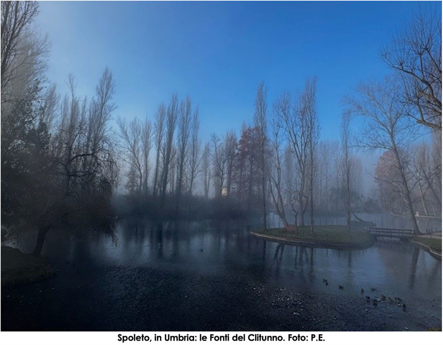 A Spoleto, in Umbria, dopo favolose interazioni con i giovani membri del Centro di Studi Aurora, sotto la nebbia del primo mattino, le Fonti del Clitunno appare come un sogno spettrale. Qui si trova il cuore della "stirpe italiana". Byron rimase ipnotizzato quando la visitò.