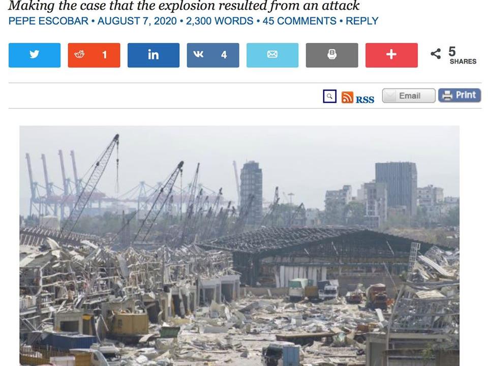 Pepe Escobar: Chi trae profitto dalla tragedia di Beirut
