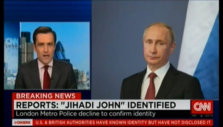 Un ritratto di Vladimir Putin è apparso sullo schermo, si spera a causa di un problema tecnico, nel momento in cui un reporter della CNN dava la notizia dell'identificazione dell'uomo che appare nei video delle decapitazioni di ostaggi occidentali diffusi nei mesi scorsi. Jihadi John è il londinese Mohammed Emwazi
