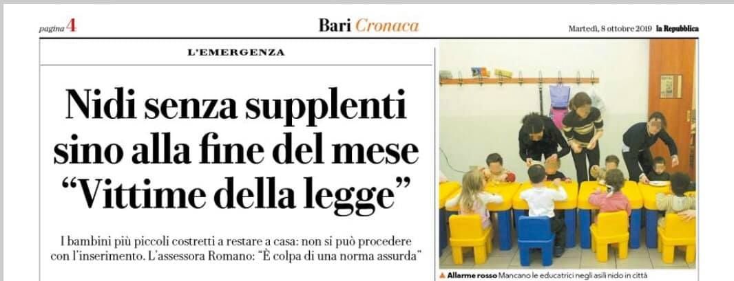 I genitori cominciano a chiedere spiegazioni. Per alcuni di loro (lavoratori) l’asilo dei loro figli (che iniziava a settembre) non è neanche cominciato e i bimbi sono costretti a restare a casa. Il plesso scolastico ci mette tutta la buona volontà possibile, ma le risorse interne non sono sufficienti e il problema rimane.