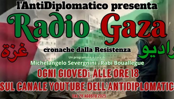 Ma in questo giorno per noi importante siamo dunque lieti di annunciare la nascita di “Radio Gaza” e l’inizio di un appuntamento settimanale, ogni giovedì alle 18, sul canale YouTube dell’AntiDiplomatico, a partire dal 28 agosto.
