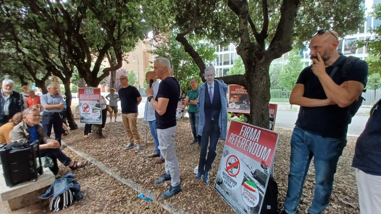 E’ un pomeriggio afoso, quello del 24 giugno a Roma, un sabato di esodi verso il mare, di partenze con le valigie cariche per sgombrare la testa dai pensieri affannosi del lavoro, delle bollette, della guerra. Ma forse nella testa degli italiani verso le spiagge, il pensiero della guerra non c’è. Di sicuro non c’è quello dei Referendum Ripudia la guerra e Generazioni Future, perché queste iniziative democratiche sono deliberatamente rese inaccessibili all’opinione pubblica dai media italiani.