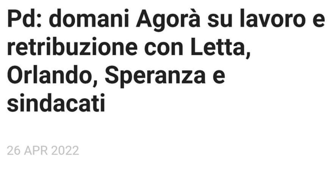 Oggi si inaugura uno spazio di discussione presso la sede del Partito Democratico che ha come oggetto, sentite bene!, "Retribuzioni giuste. La dignità del lavoro e del salario tra crisi e transizioni".