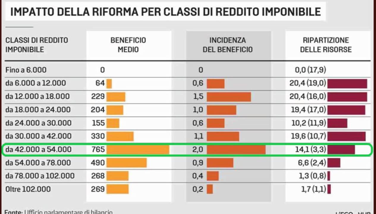 L’ ufficio bilancio della Camera ha dimostrato che della cosiddetta riforma si avvantaggeranno di più i redditi medio alti. Infatti un operaio riceverà da essa mediamente 162 euro all’anno, un suo dirigente 368 in media, in alcuni casi fino a oltre 700. L’esatto contrario di ciò che ha annunciato il Presidente del Consiglio. E questo, è bene ricordarlo, di fronte ad un aggravio del costo della vita stimato mediamente in 1600 euro all’anno a famiglia. La riforma di Draghi dà pochi soldi a tutti e meno ancora a chi ne ha più bisogno e lavora e fatica di più.