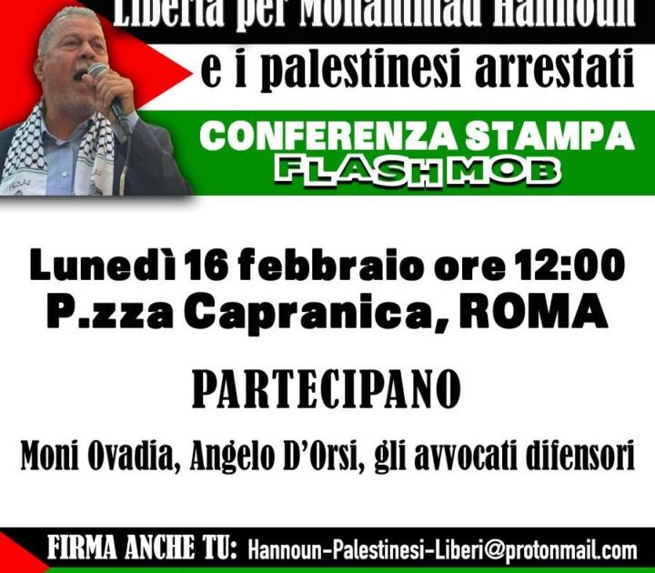 Roma, 16 Febbraio. ore 12:00: Conferenza stampa del Comitato Nazionale per la liberazione di Mohammed Hannoun