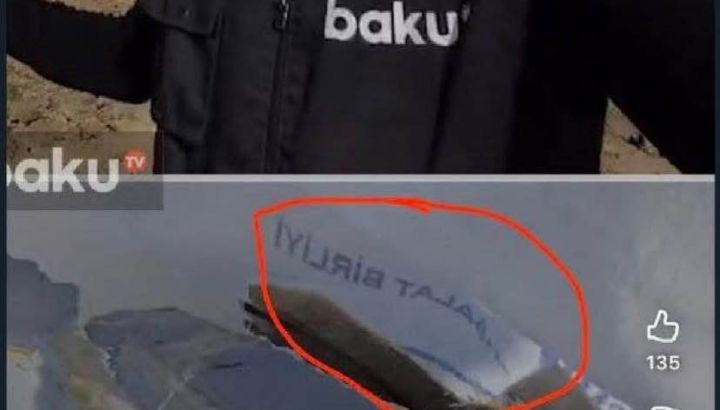 Azat TV evidenzia inoltre come le immagini e i clip video di Baku TV, "ampiamente circolati", mostrino chiaramente i rottami con queste incisioni, contraddicendo direttamente le accuse ufficiali che puntavano il dito contro Teheran.