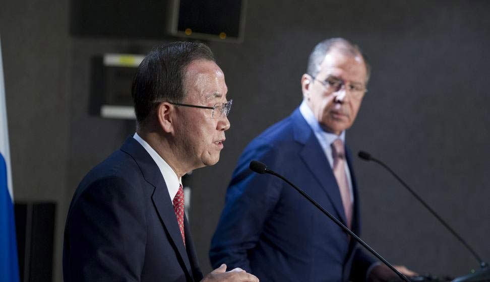 Sottolineando che una soluzione politica è l'unico modo per porre fine alla crisi in Siria, il Segretario Generale delle Nazioni Unite Ban Ki-moon ha chiesto che la conferenza internazionale proposta dalla Russia e dagli Stati Uniti sia convocata il più presto possibile "E' mia sincera speranza che si possa convocare una conferenza internazionale sulla Siria il più presto possibile per aiutare le parti a sedersi al tavolo dei negoziati", ha dichiarato Ban Ki-moon nel corso di una conferenza stampa congiunta a Sochi, il 17 maggio, con il ministro degli Esteri russo Sergej Lavrov.