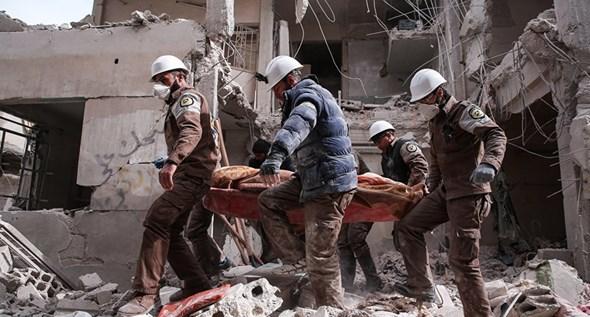 Uomini affranti dal dolore vagano senza saper che fare, mentre i soccorritori, i White Helmets si affannano a trasportare i feriti con le barelle e con le mani. A lavare con acqua i vestiti e le persone intrisi di gas tossici.