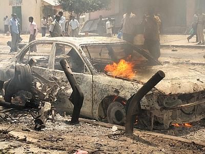 Un autobomba è esplosa nel cuore della capitale provocando il ferimento di due persone in un attacco rivendicato dal gruppo ribelle al Shabaab. L'esplosione, che ha scatenato raffiche di arma da fuoco a Mogadiscio, era solo l'ultimo atto di una ondata di attentati nel paese in cui il governo sostenuto dalle Nazioni Unite sta lottando per proteggere la città le milizie islamiche legate ad Al-Qaeda. L'esplosione si è verificata nella zona dove si trovano gli uffici amministrativi di Mogadiscio, nei pressi del vivace Km 4. La polizia ha detto che quattro sospetti sono stati già arrestati e che le autorità stanno investigando su un secondo veicolo sospetto che si troverebbe in città.