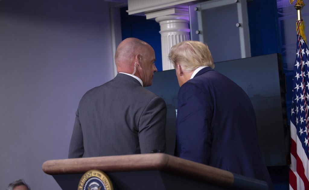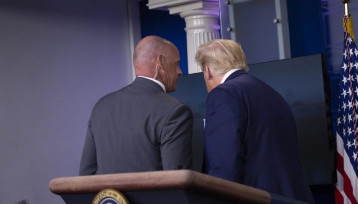 TRUMP EVACUATED from White House press briefing room by US Secret Service. An agent locked the briefing room doors from the exterior. pic.twitter.com/El9Xi4lAlE