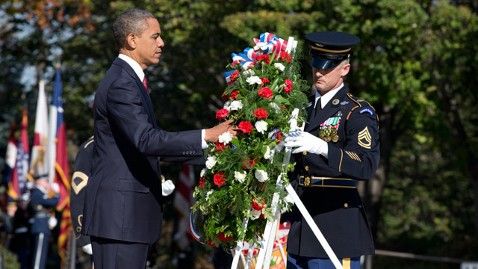 In linea con la tradizione, il Presidente ha deposto una corona di fiori sulla Tomba del Milite Ignoto al Cimitero Nazionale di Arlington, in Virginia, per "tutti coloro che hanno indossato l’uniforme della nostra nazione." Obama ha poi tenuto un discordo al Memorial Amphiteater aggiungendo che ”l'America non potrà mai dimenticare il sacrificio fatto dai suoi veterani e dalle loro famiglie”. Obama ha ricordato come, dopo dieci anni, le Forze Armate non sono più impegnate in Iraq e a breve lasceranno l’Afghanistan, lasciandosi alle spalle un decennio di conflitti. "Questo è quello che facciamo in America. Ci prendiamo cura l'uno dell'altro ", ha proseguito il Presidente. "Ci prendiamo cura dei nostri veterani. Ci prendiamo cura delle vostre famiglie", ha aggiunto il Presidente, lodando il lavoro del Dipartimento dei veterani americani e l'impegno profuso sia dalla moglie Michelle che dalla moglie del vicepresidente Biben,Jill.
