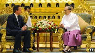 Nell'ultima tappa della visita nel sud est asiatico per promuovere gli interessi britannici, storica visita del primo ministro David Cameron in Myanmar. Come primo leader del governo inglese a recarsi nel paese dall'indipendenza del 1948, Cameron ha incontrato il presidente Thein Sein, nella città di Nay Pyi Taw e parlerà in serata anche con il leader del movimento democratico Aung San Suu Kyi a Rangoon. Il primo ministro ha voluto testimoniare il sostegno inglese al processo di riforma democratica in atto nel paese e fornito il supporto al paese su come combattere la corruzione e garantire pace e riconciliazione, confermando anche la possibilità dell'elimnazione di tutte le sanzioni del''UE. "Adesso c'è un governo impegnato nella riforma, che ha intrapreso passi coraggiosi," ha dichiarato Cameron, sottolineando però che "è una lunga strada deve essere ancora percorsa e tanto più il governo mostra che il processo di riforma è reale, tanto più dobbiamo restare cauti nei giudizi."