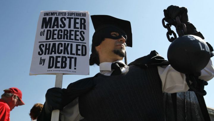 Per quale motivo allora si è arrivati a questa situazione insostenibile? La crisi economica e consequenzialmente del lavoro, porta infatti i neolaureti statunitensi ad un approccio lavorativo “disperato”. I dati riportano infatti cifre che seppur non ancora così tragiche, sono comunque in aumento. L'8% degli studenti non riesce ad essere assunto e circa il 18% non riesce a trovare un lavoro che possa permettergli di lavorare un numero sufficiente di ore ad uno stipendio adeguato. Per questo motivo, oltre a non avere la possibilità di mantenere le spese vive, è nei fatti impossibilitato nell'estingure il mutuo. La situazione inoltre non è standard in tutti gli Stati Americani. Proprio come nel Sud Italia, esistono zone, Ohio e New Mexico ad esempio, nelle quali il lavoro scarseggia maggiormente. Lo studente si trova così già in partenza con un debito sulle spalle di diverse centinaia di migliaia di dollari ed immaginare di aprire un ulteriore mutuo per l'acquisto di una casa risulta più che improbabile (soprattutto poiché le banche stesse non lo rilascerebbero).