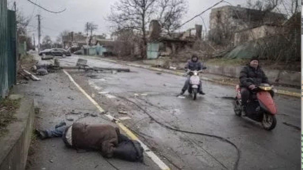 Torno a domandare: dando per certo che i russi durante l’occupazione di Bucha hanno ucciso e commesso crimini, testimoniati dalle fosse comuni, dove i cittadini di Bucha hanno sepolto i loro morti sfidando l’occupante, perché improvvisamente, all’inizio di aprile, i morti per strada non vengono più sepolti, in quelle fosse ? Se hai sfidato l’occupante nel gesto pietoso di seppellire, perché non lo fai più quando Bucha è libera ? Erano morti altrui ? Il primo fotografo giunto sul posto raccontò a Repubblica di aver visto in una cantina vittime con il bracciale bianco, collaborazionisti. Poi quel dettaglio è sparito. Lo intervistano, non glielo chiedono più. E lui, dovendo lavorare sul posto, non si dilunga.