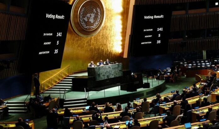 Oltre alla Russia Siria Belarus Eritrea Corea del Nord, non hanno votato a favore della risoluzione ONU voluta dagli USA e dall’UE che deplora la Russia (astenendosi):