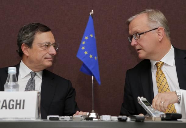 Ribaltandole previsioni fatte nell'inverno scorso di una crescita minima dello +0,1%, il commissario europeo per gli Affari economici e monetari, Olli Rehn, ha annunciato come le 17 economie della zona euro si contrarranno complessivamente dello 0,3%. Ma con segnali di ripresa a fine anno, uno +0,7% stimato nell'ultimo quarto del 2013. Secondo i dati rilasciati dalla Commissione europea nell'ultimo quadrimestre del 2012, il Pil dei 17 paesi della zona euro si è contratto dello 0,6% complessivo nell'ultimo quadrimestre, nella peggiore performance dall'inizio del 2009 e per la prima volta dalla sua costituzione la zona euro ha registrato stime negative per tutto l'anno.