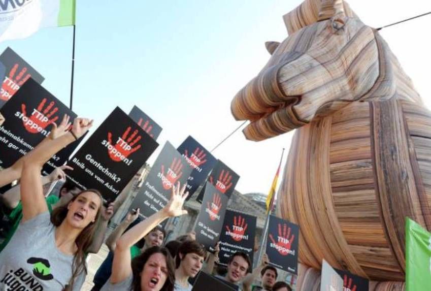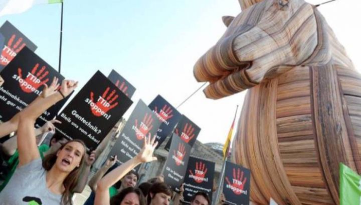 Un gruppo di attivisti ha installato un cavallo di Troia nel centro di Madrid per protestare contro i negoziati sull'accordo di libero scambio tra Bruxelles e Washington (TTIP). Secondo i rapporti, questa figura simboleggia le intenzioni nascoste del TTIP così come gli svantaggi che l'accordo comporterebbe per la popolazione europea. Da Madrid, il cavallo gonfiabile attraverserà tutta la Spagna e farà la sua comparda in diversi Paesi comunitari.
