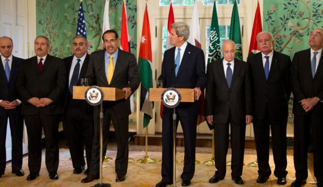 Il Segretario di Stato degli Stati Uniti, John Kerry, ha incontrato lunedì alcuni funzionari della Lega Araba nel tentativo di dare nuova linfa al piano saudita per rilanciare il processo di pace in Medio Oriente. Kerry ha suggerito che l'Iniziativa di pace araba – proposta nel 2002 dal re saudita Abdullah, secondo la quale 22 paesi arabi dovrebbero normalizzare i rapporti con Israele in cambio del ritiro di Israele dai territori occupati - potrebbe fornire un quadro per porre fine al conflitto. Dopo i colloqui, il Segretario americano ha lodato "il ruolo molto importante della Lega araba nel portare la pace in Medio Oriente" e ha detto di aver riaffermato la visione del presidente Barack Obama di "due Stati che vivono fianco a fianco in pace e sicurezza, realizzata attraverso negoziati diretti tra le parti."