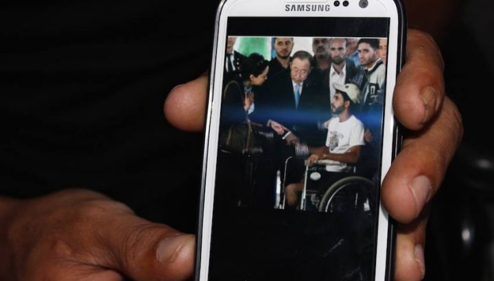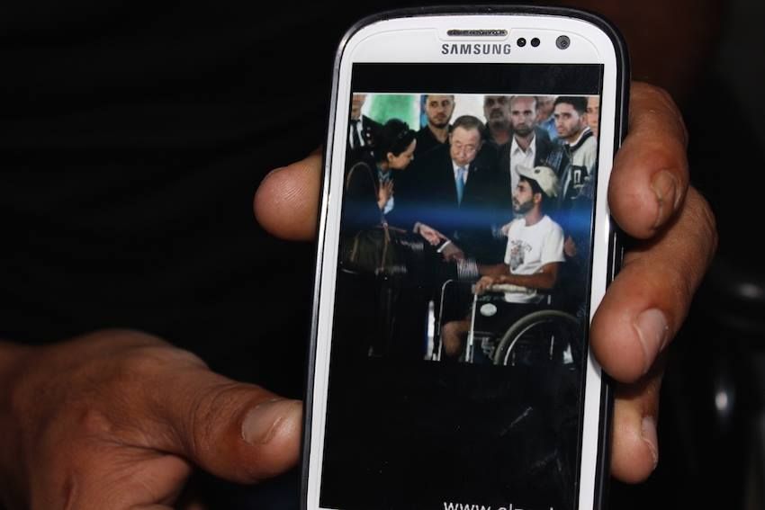 Quando Ban Ki Moon si è recato a Gaza, dopo il massacro, Ibrahim ha cercato di raggiungerlo per consegnargli una lettera di sua madre. Inizialmente gli è stato impedito dalla sicurezza dell'Autorità Palestinese, che lo ha picchiato in malo modo, nonostante la sua condizione. In un secondo tentativo, il presidente delle Nazioni Unite ha ricevuto la lettera e gli ha promesso cure ed un paio di gambe ortopediche