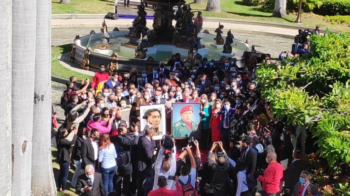 Da lì, i parlamentari hanno marciato verso il Palazzo Legislativo portando le immagini di Bolívar e del leader della Rivoluzione Bolivariana, Hugo Chávez, che come abbiamo spiegato in precedenza hanno così fatto ritorno in seno all’organo democratico simbolo del potere popolare.