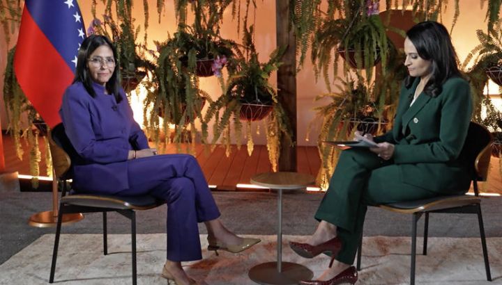 In un’intervista rilasciata all’emittente televisiva statunitense NBC News, la presidente incaricata della Repubblica Bolivariana del Venezuela, Delcy Rodríguez, ha riaffermato con fermezza la legittimità della presidenza di Nicolás Maduro, respingendo le accuse pendenti negli Stati Uniti contro il capo di Stato venezuelano e la prima combattente, Cilia Flores. “Posso assicurarvi che il presidente Nicolás Maduro è il presidente legittimo”, ha dichiarato Rodríguez alla conduttrice di Meet the Press, Kristen Welker. “Lo dico in quanto avvocato. Lo sono. Sia il presidente Maduro che Cilia Flores, la primera dama, sono innocenti”.