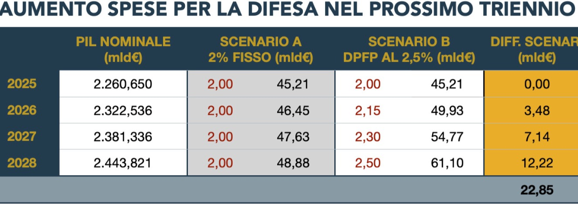 Le spese per la difesa aumenteranno nei prossimi anni , magari meno di quanto previsto dagli accordi Nato e Ue che vogliono i loro muri di droni e di missili, le armi all’ucraina, sia sufficiente guardare gli articoli sulla stampa e, meglio ancora, il Documento programmatico di finanza pubblica (Dpfp)