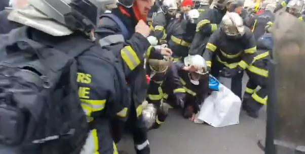 VIDEO. La polizia di Macron manganella i pompieri in sciopero