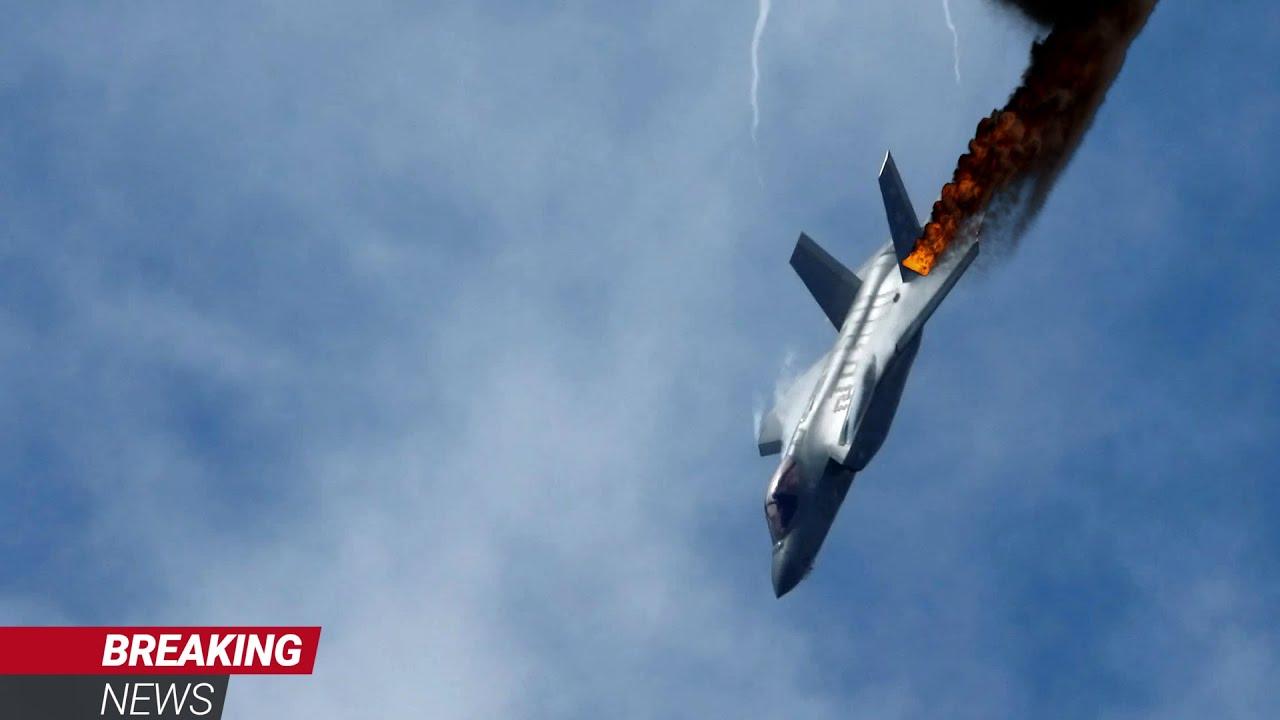 Il filmato mostra il caccia stealth monomotore F-35B che si schianta al suolo avvolto in una palla di fuoco prima di emettere un denso pennacchio di fumo nero.