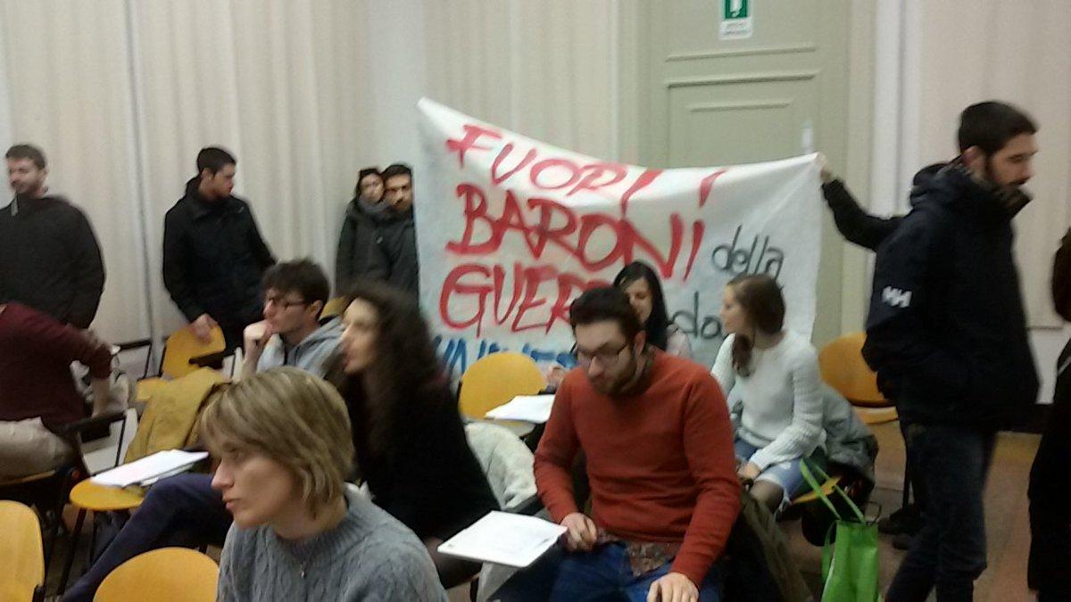 No l’unica “violenza” subita da questa Grande Firma del Corriere della Sera è stata una, sostanzialmente pacifica (si veda il video), contestazione ai suoi continui editoriali che invocano una nuova guerra alla Libia. Anzi per citare le parole del primo comunicato ANSA “Incalzato da una serie di domande provocatorie Panebianco avrebbe deciso di sospendere la lezione e spostarla in un’altra aula”. Tutto qui? Si, tutto qui.