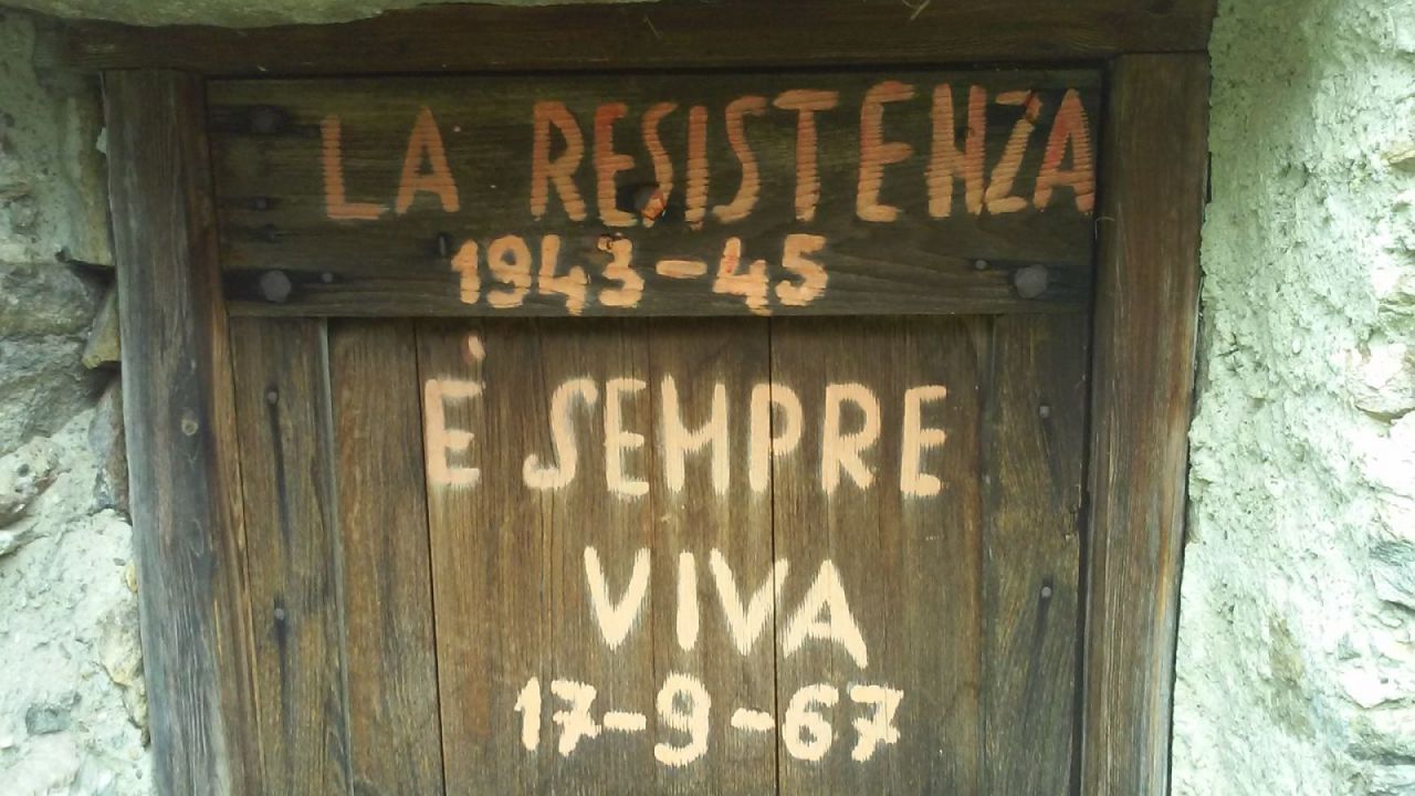 Dopo una camminata in mezzo ai boschi Sergej ha raggiunto i luoghi dove si trovavano due delle basi dei partigiani della Brigata Lys, nei pressi dell’alpeggio di Mont Rot: qui, su un grosso masso, è stata incisa una scritta che ricorda i 300 partigiani - di cui venti caduti - che facevano parte della Brigata.