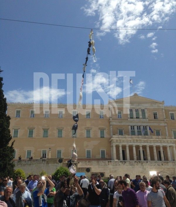 La protesta simbolica, riportata dal blog KTG, si basa dal detto greco “mas piran ta sovraka” - “ci avete tolto anche le mutande” per "ci avete privato di ogni cosa". Uomini e donne, venditori e produttori dei vari mercati orto-fruttiferi, si sono radunati a piazza Kaniggos e hanno marciato verso il Parlamento dove hanno messo in scena questa protesta singolare.