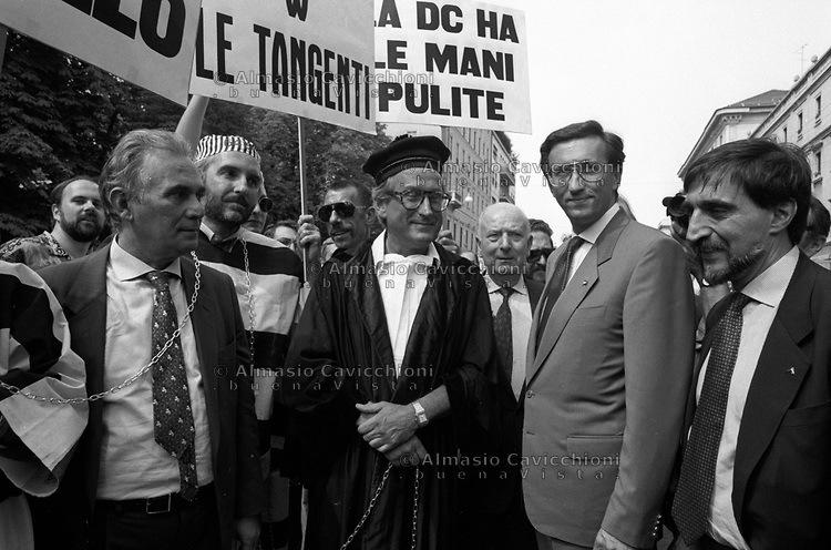 Le immagini di Arnaldo Forlani alla sbarra per il processo Enimont, in preda al panico e tremante di fronte alle incalzanti domande del pm Di Pietro sono rimaste scolpite come simbolo dell’inchiesta giudiziaria di Mani Pulite nel 1992. Per la prima volta, il potere era chiamato a rispondere in prima persona dei propri misfatti di fronte a una gremita aula di giustizia, al cospetto di una folla a tratti più stupita che rancorosa, quasi incredula del passaggio epocale che si stava compiendo.